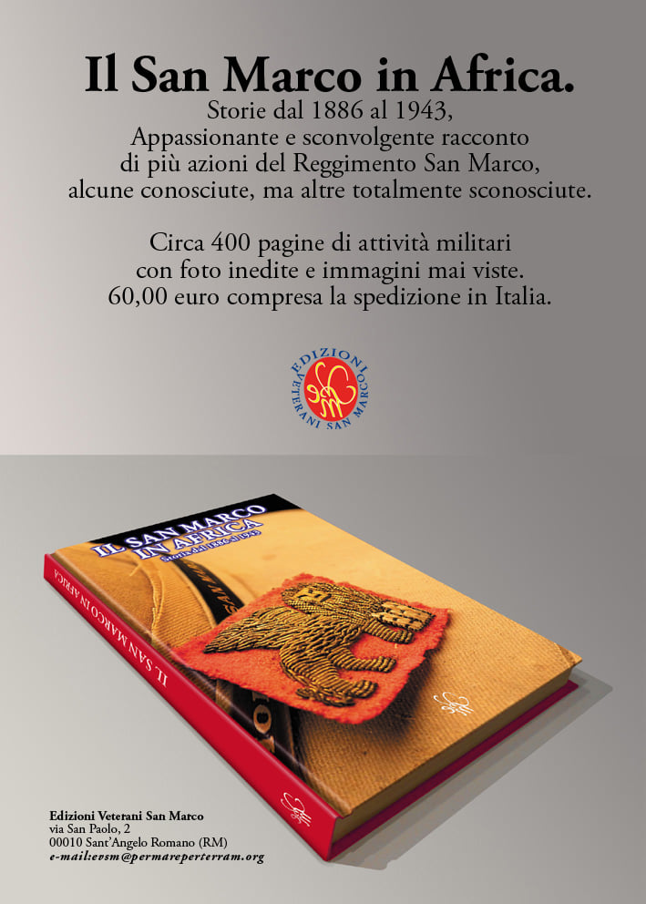 Questo è il quinto libro pubblicato dalla Edizioni Veterani San Marco che permette a tutti di conoscere fatti concreti di operatività militare che dalla fine del 1886 al 1946 riguarda questa incredibile storia sconosciuta a tutti.