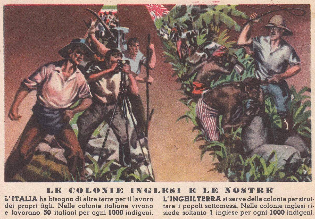 Per comprendere oggi come il fenomeno coloniale, nelle sue due fasi, lo si attuasse all’epoca nell’interesse di tutta la società, basta pensare al doppio grave pericolo che sovrasta su di questa, quando le forze sprigionantisi da un popolo non venivano convogliate verso determinati sbocchi naturali o regolamentati, ma surcompresse; mentre al tempo stesso le energie latenti non guidate e non tutelate, di altri popoli viventi su vasti territori inutilizzati, mantenessero larghe zone di disordine in seno alla società stessa.