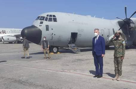 Mogadiscio, 23 Marzo 2021 – A bordo di un velivolo dell’Aeronautica Militare italiana è atterrato oggi all’aeroporto Aden Adde di Mogadiscio il Ministro della Difesa italiano, Lorenzo Guerini.