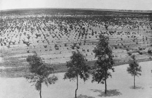 4. Frutteto asciutto. Occupava circa 3/4 di Ha e vi erano in prova albicocchi e fichi. La scelta di queste due sole specie fu dovuta al fatto che la sperimentazione condotta su altri alberi fruttiferi aveva dimostrato la poca o nessuna convenienza economica della loro coltivazione all’asciutto.