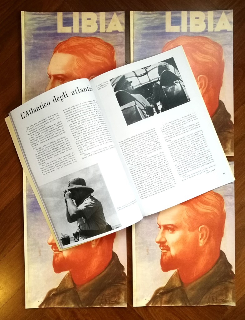 Numero speciale di maggio-agosto 1940 stampato a Tripoli per commemorare la morte di Italo Balbo. Cento pagine interamente dedicate al Maresciallo dell’Aria con 67 magnifiche immagini e 25 articoli di grandi firme dell’epoca tra cui Orio Vergani, Ardito Desio e, di Nello Quilici, morto con Balbo quel fatale giorno a Tobruk, l’ultimo articolo e uno scritto inedito. Copertina a colori illustrata da Achille Funi e inserti con disegni dell’architetto Florestano Di Fausto.