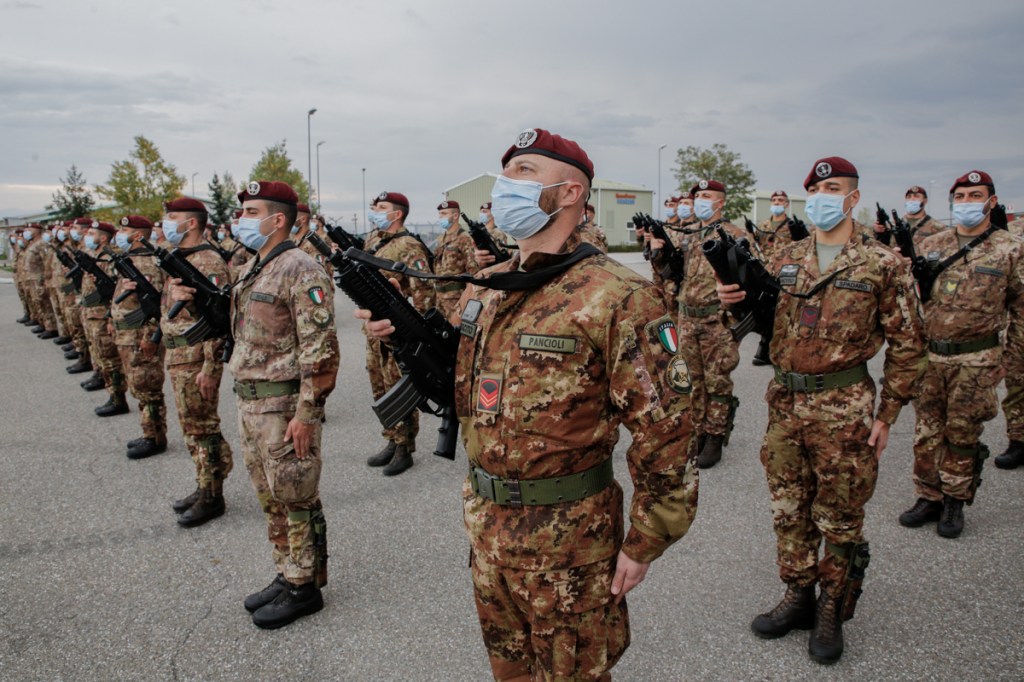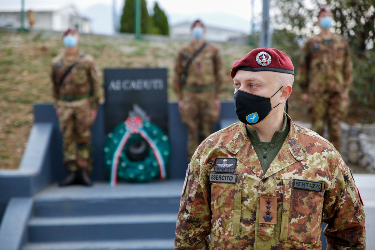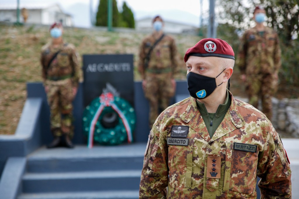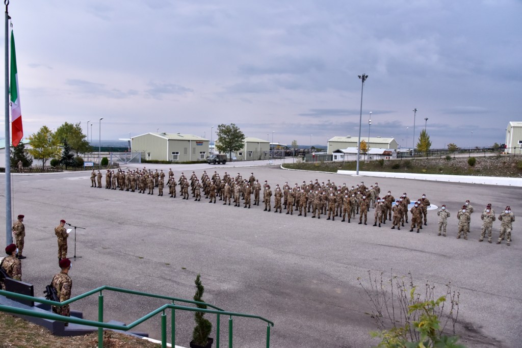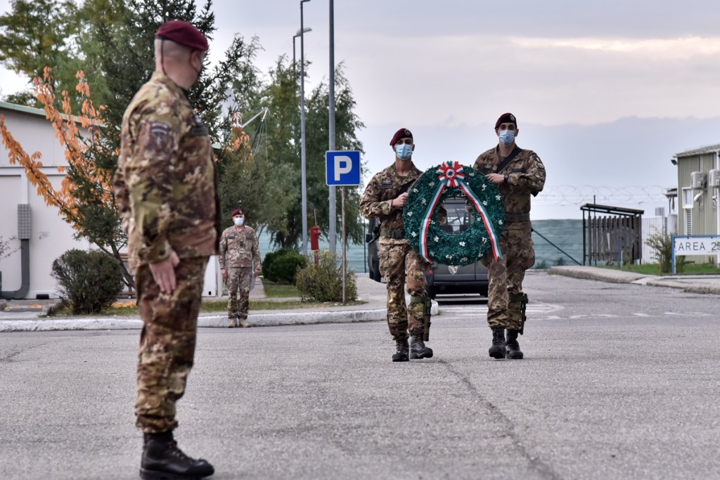 Peja/Pec, 23 ottobre 2021 – I paracadutisti del contingente italiano in Kosovo, impegnati nella missione Joint Enterprise della NATO, hanno celebrato la loro specialità presso il Piazzale in Armi di Villaggio Italia, onorando l’amata ricorrenza. I numerosi “baschi amaranto” presenti nel contingente italiano, la mattina del 23 ottobre si sono radunati per effettuare un alzabandiera solenne, successivamente hanno reso gli onori ai loro caduti con la deposizione di una corona e per concludere con la lettura della Preghiera dei Paracadutisti al grido della Folgore! La battaglia di El Alamein, di cui oggi si è celebrato il 79° anniversario, rappresenta per tutti i paracadutisti un evento di altissimo valore, costituisce esempio e monito per tutti di amor Patria e senso del dovere. Ancor oggi le gesta di quanti si batterono eroicamente in quelle infuocate sabbie africane suscita viva commozione e incondizionata ammirazione. La storia non dimenticherà mai il valore dei Leoni della Folgore che si sacrificarono per difendere i valori della Patria.