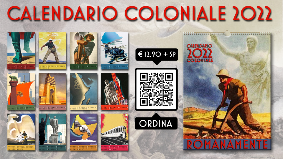 ACQUISTA ORA il CALENDARIO COLONIALE 2022 “ROMANAMENTE” – ORDINE a ilfarodimussolini@libero.it Euro 12,90 + sp – SPEDIZIONE GRATIS per l’acquisto di tre calendari oppure di un libro o due dossier “Romanamente” elencati QUI