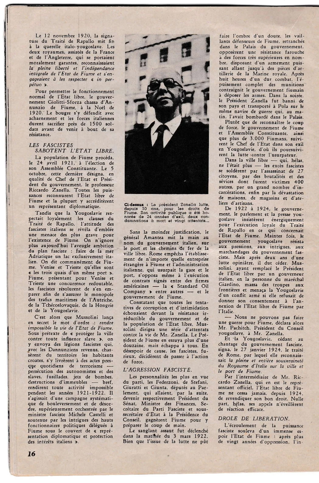 Custodito a Roma nell’Archivio-Museo storico di Fiume nel fondo “Riccardo Zanella” (capo storico dell’autonomia fiumana e militante antifascista), una rivista in lingua francese del 24 ottobre 1946 (stampata a Bruxelles), dove si denuncia la strage di italiani a Fiume e in Istria ad opera dell’OZNA e dei reparti speciali di liquidazione dell’Armata Jugoslava (KNOJ).