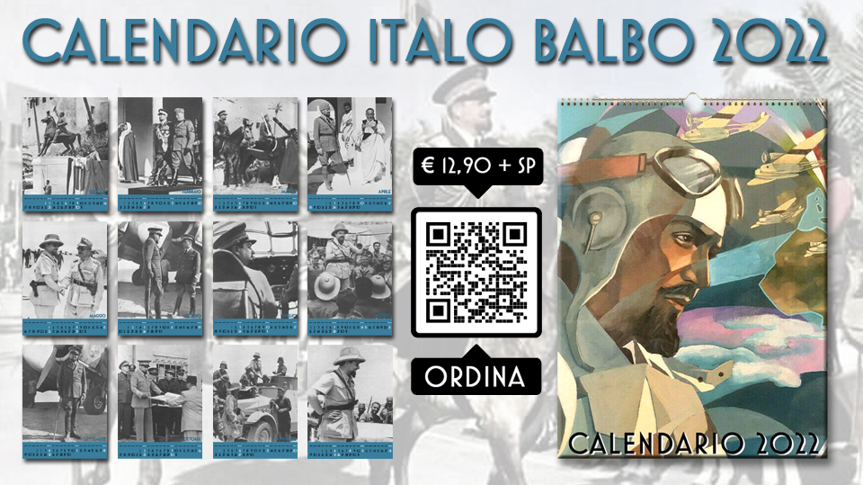 Disponibile il calendario 2022 dedicato alla figura di Italo Balbo, Maresciallo dell’Aria e Governatore della Libia. Dodici rare immagini che ritraggono Balbo in Libia, tratte dal “Mensile Illustrato LIBIA” del 1940.
