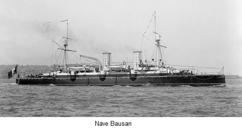Durante l’occupazione della Libia nel 1911-12 fu allestito come nave distillatrice a Genova l’incrociatore Bausan, altra vecchia unità alla quale fu smontato l’armamento pesante e su cui furono installati dissalatori in grado di produrre giornalmente, con le sue grosse caldaie da incrociatore, ben 250 tonnellate d’acqua. Venne ormeggiata a Tobruk mantenendo efficienti le armi leggere – i grossi calibri non servivano – così che, anche se ferma in porto, poteva appoggiare con i suoi tiri le operazioni dell’esercito nei dintorni dalla città.