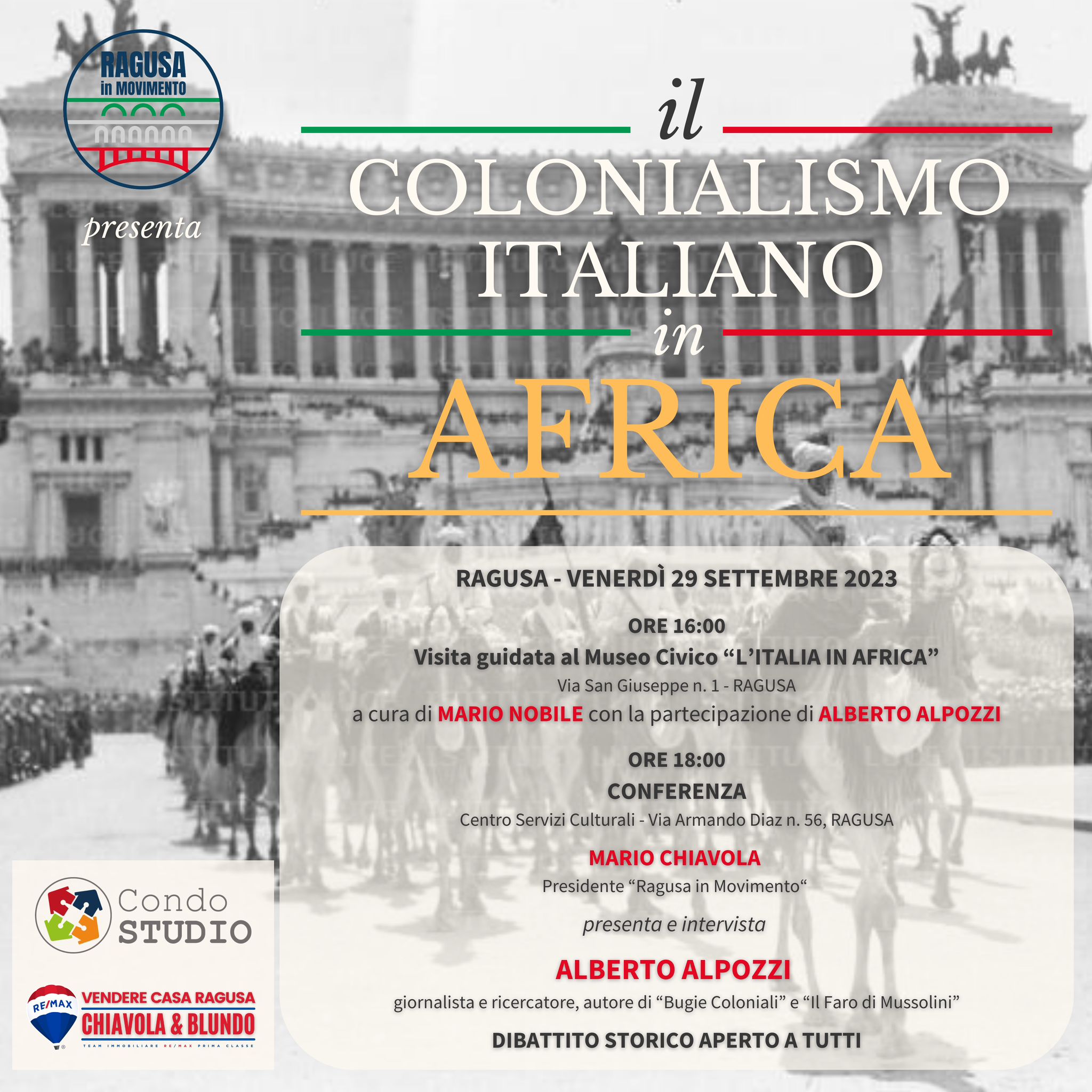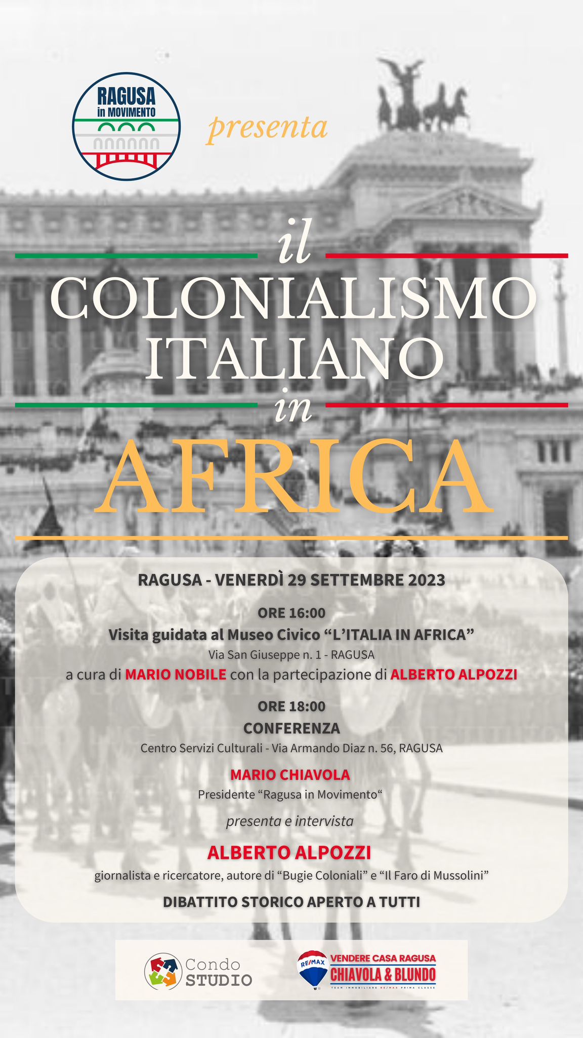 A Ragusa il 29 settembre 2023 si terrà la conferenza “Il colonialismo italiano in Africa” con la partecipazione di Alberto Alpozzi.