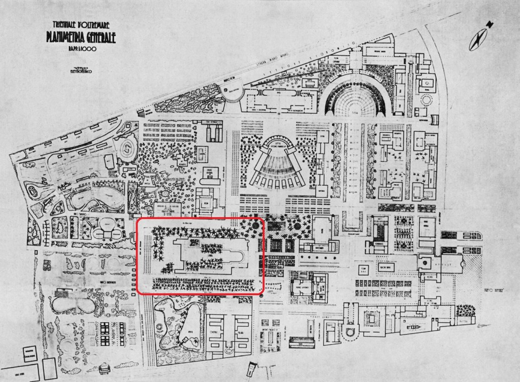 La libia era una di queste colonie. Il suo padiglione progettato dall’architetto Florestano di Fausto, dopo aver realizzato diversi progetti in Libia specialmente nel settore turistico , in accordo con la vision del Governatore italiano della Libia Italo Balbo: rendere la Libia una delle principali destinazioni turistiche.