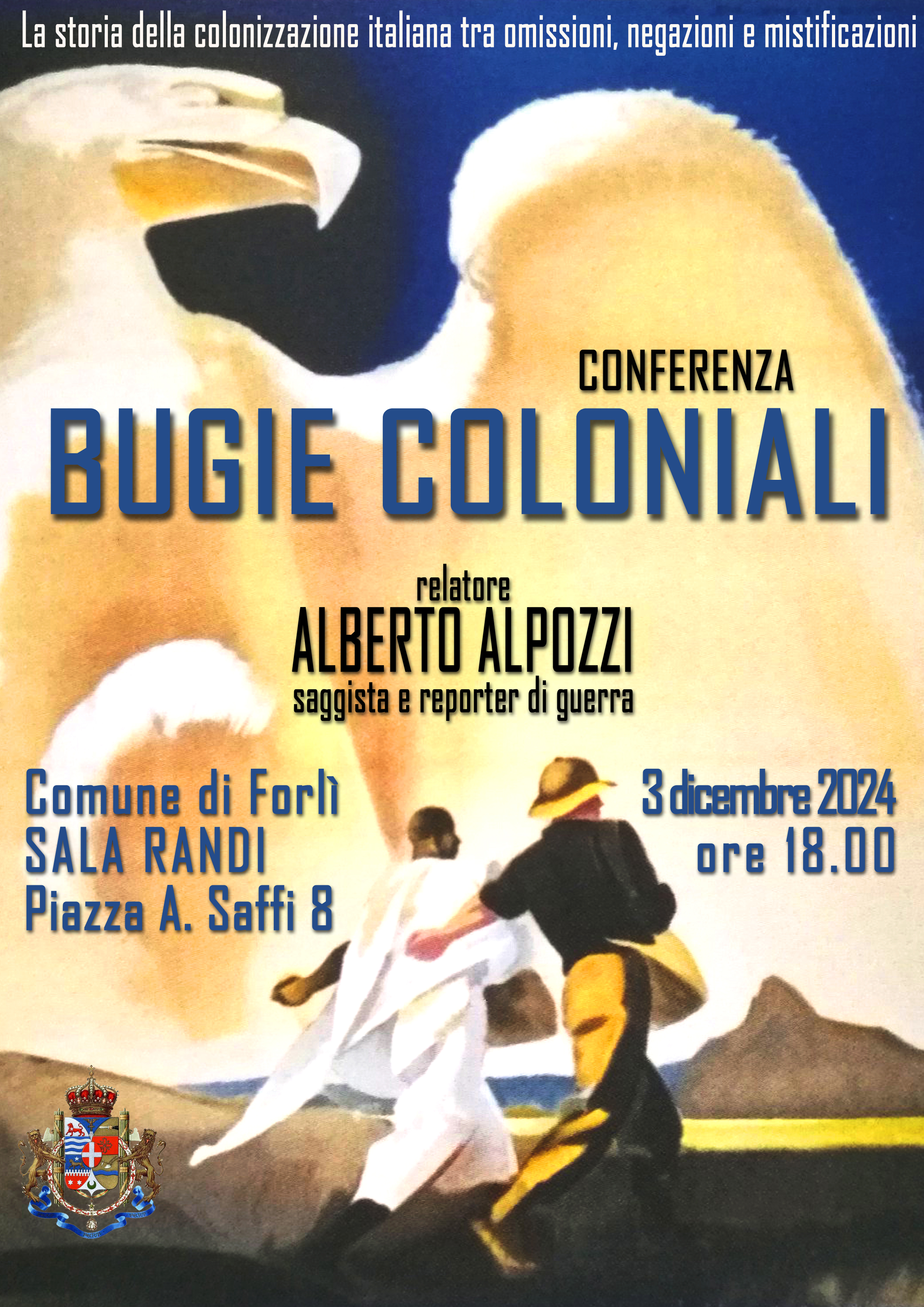 Si terrà martedì 3 dicembre 2024 nella Sala Randi del Palazzo Comunale di Forlì in piazza Aurelio Saffi n. 8 la conferenza storica dal titolo “Bugie Coloniali – La storia coloniale italiana tra omissioni, negazioni e mistificazioni”.